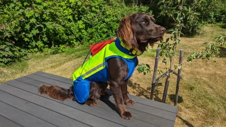Zichtbaarheid van de hond, zeker bij honden met kleuren die erg lijken op zwijn, vos, nutria etc is dit een heel belangrijk facet! Nog een belangrijk facet is de bescherming tegen de enorme weerbaarheid van groot wild zoals wilde zwijnen.